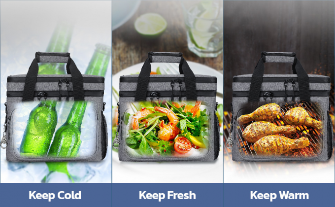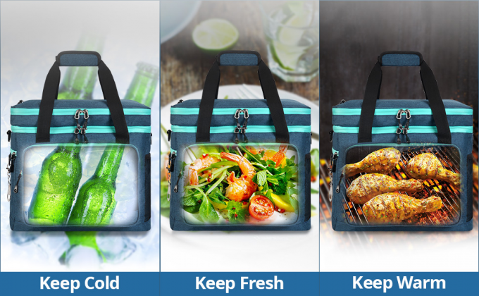 This cooler bag is perfetct for daily travel use. Made of Water Resistant and Durable material with metal zippers. The large cooler bag tote owns hard outside shell and separate compartments for food & drinks,